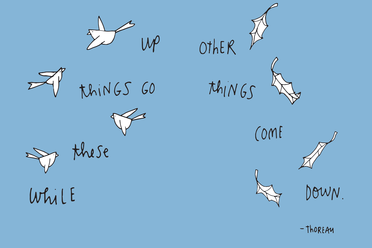 Up and down. Grateful for these laws of nature, these reliable forces at work. Moon and sun, roots and branches, the movement of tides. Thank you to one of our greatest observers for this call back to the simplicity of experience, happening all around (and within) us.